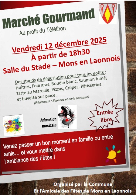 L'amicale des fêtes et la commune de Mons-en-Laonnois organisent un marché gourmand au profit du téléthon